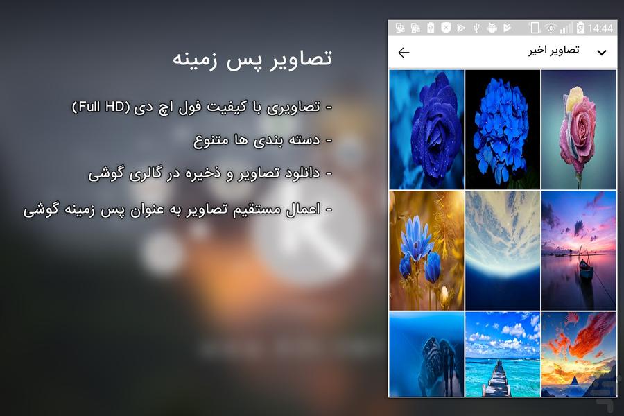 تصاویر پس زمینه : در این بخش روزانه ده ها تصویر پس زمینه در دسته های مختلف برای تمامی سلیقه ها قرار می گیرد که هم می توانید آنها را در گالری دستگاه خود ذخیره کنید و یا مستقیم در تصویر پس زمینه گوشی خود اعمال نمایید.