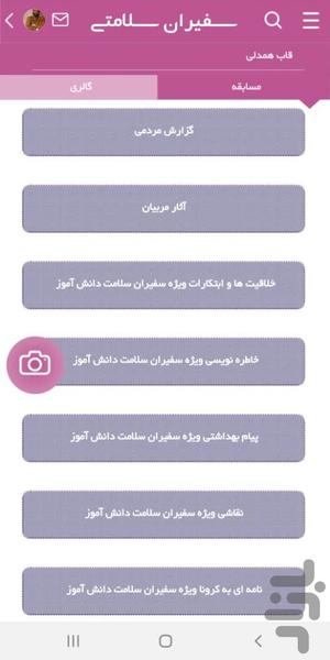 با نصب اپلیکیشن جامع سفیران سلامتی ویژه مقابله با کرونا ویروس ، همه مواردی که برای شکست کرونا به آن احتیاج دارید بر روی گوشی موبایل شماست. آموزش، اطلاع رسانی، نیازسنجی، معرفی و آدرس  مراکز درمانی، معرفی  استارتاپ ها و کسب و کارهای خدمت رسان به مردم، تست و غربالگری کرونا، آموزش های ویژه دانش آموزان و هشدارهای منطقه ای از امکانات این اپلیکیشن می باشند.