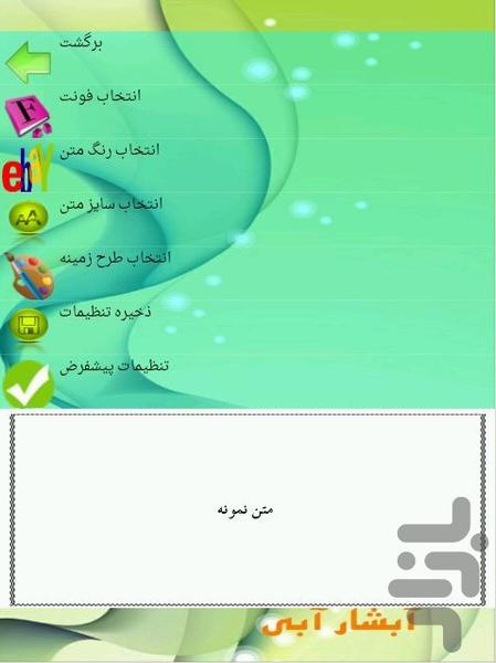 ● با تنظیمات فوق العاده از جمله انتخاب فونت . سایز متن . رنگ متن . تصویر و قاب زمینه