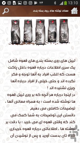 نکته: به مرور زمان به تعداد و تنوع قهوه های موجود در اپلیکیشن افزوده خواهد شد.