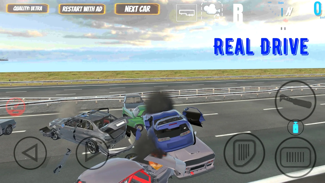With Real Drive, you can drive sports cars in a quiet, peaceful countryside. If you want, you can use jeep to climb the mountains. and if you have never used it, you can use a truck. How far will you go on a very difficult road? Remember, your vehicle can take real damage.