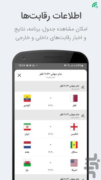 - مشاهده نتایج زنده فوتبال ، فوتسال ، والیبال و بسکتبال با جزئیات آن