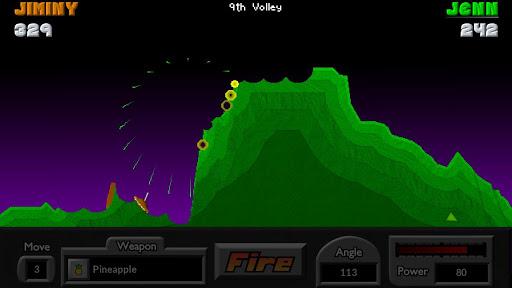 Experience the thrill of launching volley after volley of powerful and fun weapons across the battlefield, using very simple controls. Select your angle, power, and FIRE! Your arsenal of unique and useful weapons includes: Napalm, Firecracker, Skipper, Cruiser, Dirt Mover, and dozens more! This is the light-hearted game of heavy artillery for everyone.