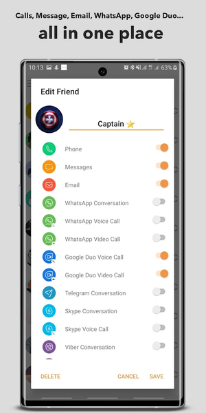 • Quickly to connect your friend by make Call, send Message/Email. Specially via OTT app like as WhatsApp, Google Duo, Skype, Telegram, Viber.