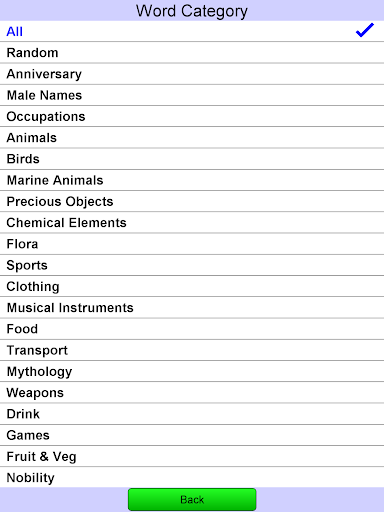 This helps avoid searching for many small words (a common problem in word apps). Also useful for specifying really difficult games (e.g. set both minimum and maximum word length to three).