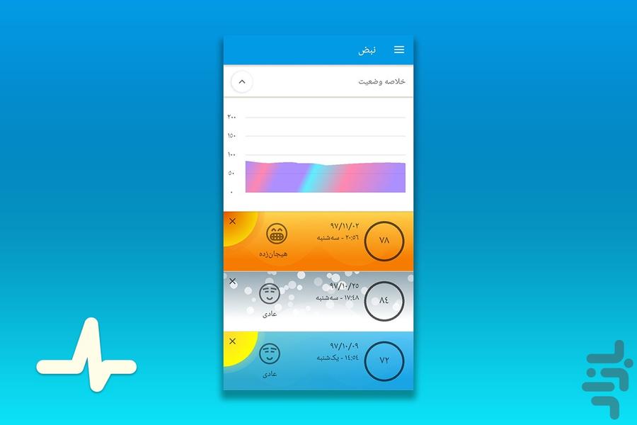نرخ تپش قلب فاکتور مهمی برای سنجش سلامتی و تناسب اندام شماست. با استفاده از اپلیکیشن نبض ، می توانید نرخ تپش قلب خود را در هر زمان و شرایطی به سادگی و با دقت زیاد اندازه گیری و ثبت کنید. همچنین با مقایسه نتایج ثبت شده میتوانید بهبود وضعیت سلامتی و تاثیر ورزش بر عملکرد قلب خود را نیز مشاهده کنید. علاوه بر این نبض به شما کمک میکند کیفیت و بهره وری تمرینات ورزشی خود را به بالاترین حد برسانید.