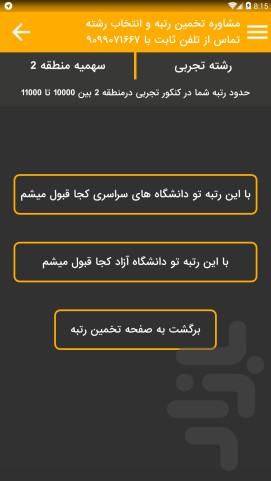 در کنار این تخمین رتبه ، ما آمار قبولی رتبه ای که برای شما تخمین زده شده رو به شما نشون دادیم که با درصد هایی که وارد می کنین در یک مرحله بهتون شانس قبولیتون در دانشگاه های سراسری رو بهتون بگیم .