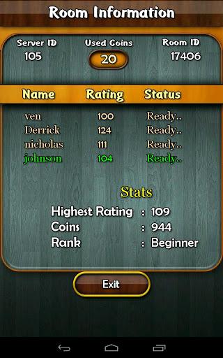 - Play in 3 online game modes with 4 game room types based on player skill rating.