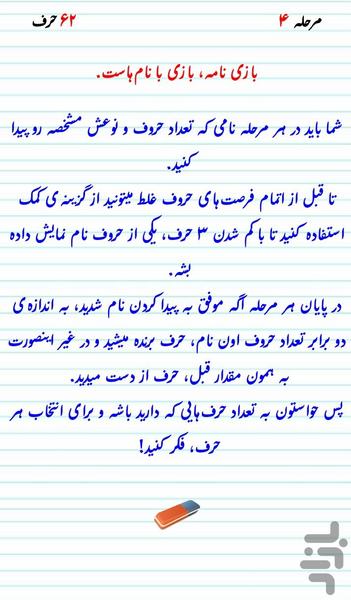 با پیشرفت در مراحل، ممکنه با اسمهای سختتری مواجه شی پس قبل از انتخاب هر حرف، فکر کن.
