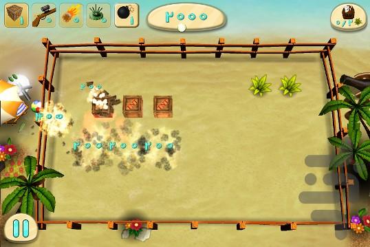 You may ask: “Oh! How could I roll those lazy chubby animals?” The answer is placed on the upper right corner of the pictures, there is an old cannon over there. That cannon has some balls in each level of game that the only usefulness of them is to make a blast wave that can scatter things around.