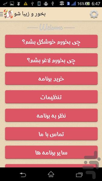 این برنامه دارای 107 سرفصل می باشد که شامل انواع نوشیدنی هاو موادغذایی مفیدبرای پوست ومو وکاهش وزن می باشد.