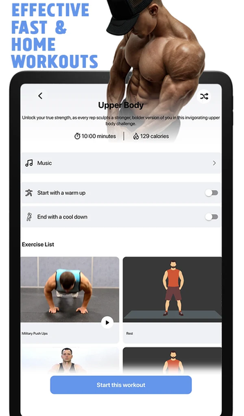 Upper Body Workouts for Men: Specialized routines that target the chest, shoulders, and arms, enabling men to build strength and muscle from the comfort of their homes.