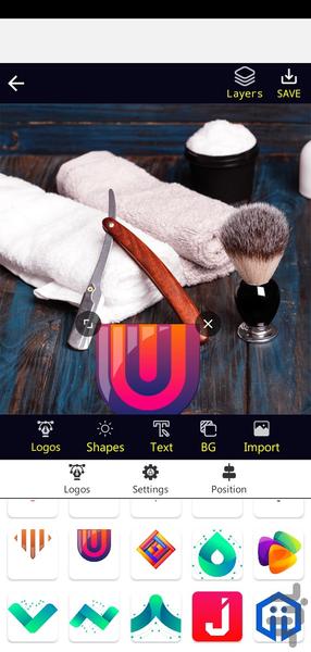 الگوهای لوگو را اضافه کنید، تصویر خود را اضافه کنید و لوگو را با پس زمینه شفاف بسازید.