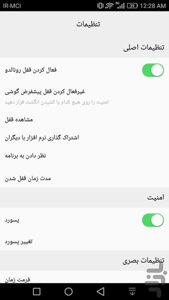 2 - قفل پیشفرض گوشی خود را غیرفعال کنید ( برای راحتی شما از داخل برنامه این امر امکان پذیر است ) .