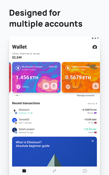 * Hold and send Ether and tokens