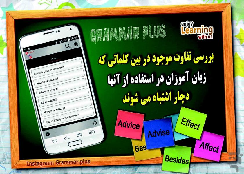 Grammar Plus is a comprehensive android application on English grammar. This bilingual application offers clear explanations of spoken and written English based on everyday usage. It provides: