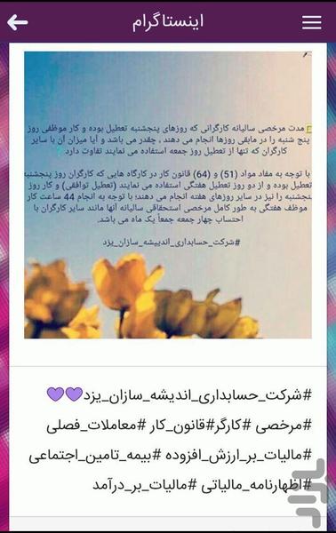 این نرم افزار دربرگیرنده کلیه قوانین و مقررات مالیاتی از جمله قانون مالیاتهای مستقیم، قانون مالیات بر ارزش افزوده، سایر قوانین مرتبط و همچنین قوانین و آیین نامه های کار و تامین اجتماعی و قوانین ثبت شرکت ها است. از ویژگی این نرم افزار امکان جست و جوی سریع و راحت قوانین و به روز رسانی خودکار آن است که بلافاصله بعد از تائید قوانین و مقررات بر روی این نرم افزار قرار می گیرد.