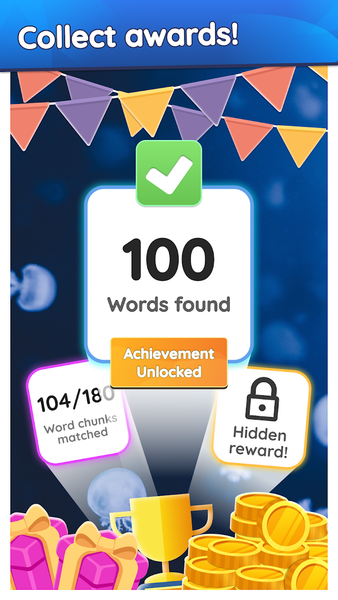 🏆Exciting rewards! Complete goals and achievements in the word game and earn coins and trophies! Find the word, beat your score and climb the leaderboards with other players!