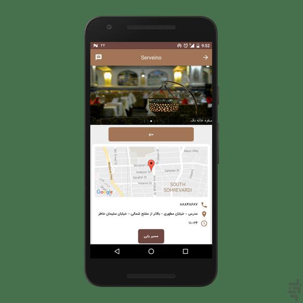 با سروینو می توانید در سریع ترین زمان ممکن سفره خونه ها و کافه های سنتی اطراف خودتون رو پیدا کنید.