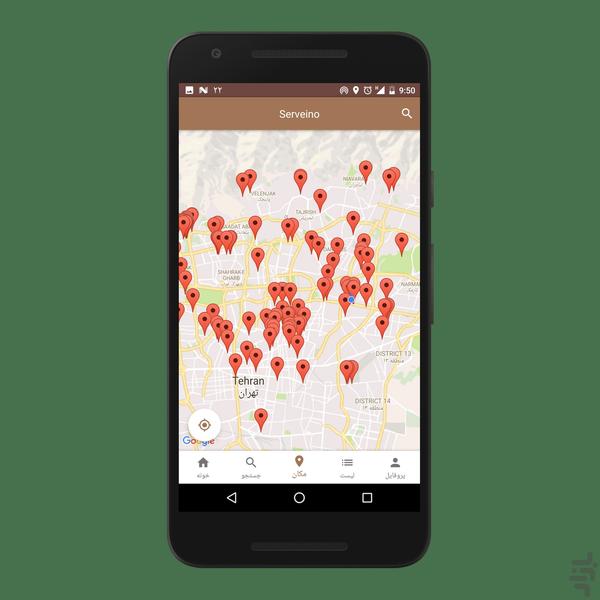 سروینو یک پلتفرم بر مبنای موقعیت مکانی است، که برای معرفی و تعامل مردم با کافه های سنتی و کافی شاپ ها توسعه یافته است.