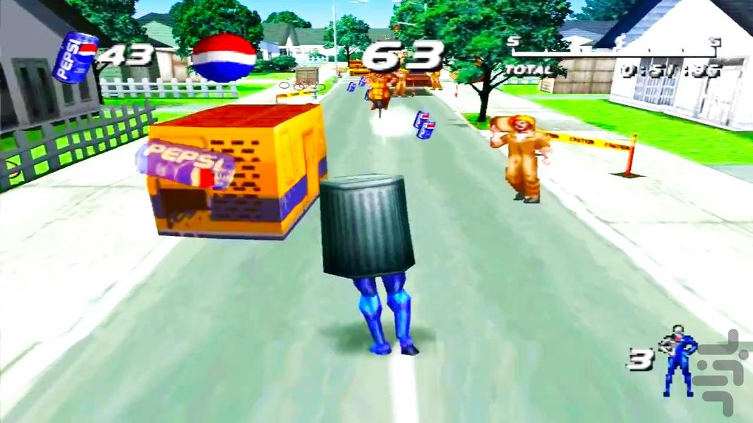 بازی Pepsi man یکی از نوستالژی ترین و محبوب ترین بازی های تاریخ است. در این بازی شما باید به عنوان دونده پپسی، در شهر بدوید و در مقابل موانع عکس العمل نشان دهید.یکی از جذابیت های بازی چرخش ناگهانی دوربین و افتادن سطل روی سر دونده است.