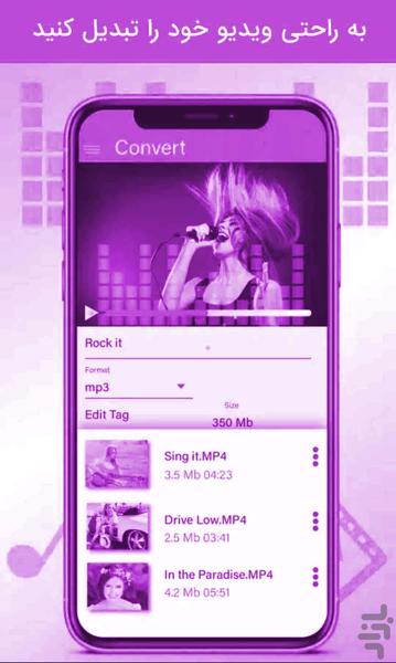 ویدئو به MP3 سریع و آسان برای تبدیل هر ویدئویی به MP3 و ویدئو به صوتی و تلفن خود ذخیره است. صوتی/mp3 استخراج از فایل های ویدیویی خود را با استفاده از ویدئو به MP3 تبدیل. موسیقی را از فیلم استخراج و ذخیره آنها به عنوان زنگ با ویدئو به صوتی تبدیل. mp3 تبدیل ساز موسیقی و ساز های صوتی است.