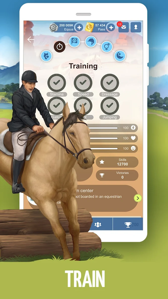 Form teams of up to 20 players to improve a breed together and reach the top spots in one of the four available rankings (best genetic potential, number of horses, number of rosettes won, or ranking in the Top 1,000 for Grand Prix competitions).
