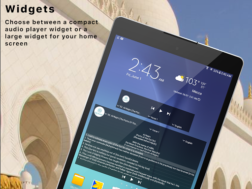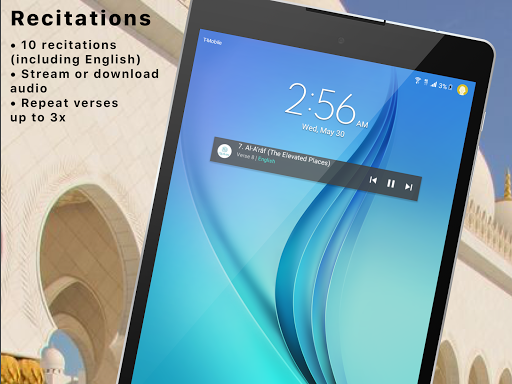 - Listen to 10 different recitations including English (by Imam Benjamin Bilal) and by great Arabic reciters like Mishary Alafasy, Maher Al-Muaiqly, Said Al Ghamdi, Abul Basit, Muhammad Ayyoub, , Muhammad Al-Minshawi and more (Option to stream or download)