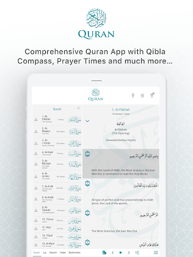 - Index/Glossary with thousands of topics and the direct link to the corresponding passage in the Holy Qur'an