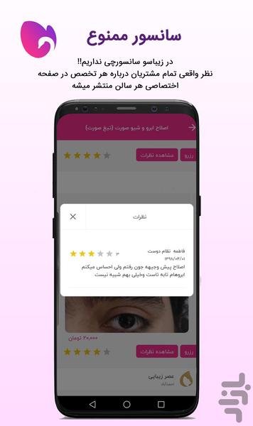 در زیباسو سانسورچی نداریم!! نظر واقعی تمام مشتریان درباره هرتخصص در صفحه اختصاصی هر سالن منتشر می شود