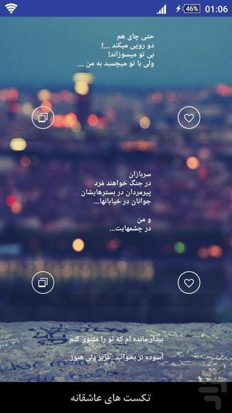تکست ها و متن های موجود در این برنامه شامل گزیده ایی از دلنوشته ها و اشعار