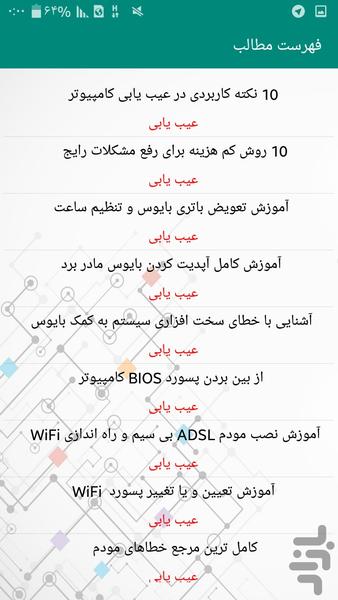 اپلیکیشن عیب یابی وتعمیرات رایانه یک برنامه کاربردی می باشد که با حجم کم و اطلاعات زیاد در اختیار شما کاربران گرامی قرار گرفته است که شامل بخش های از جمله: