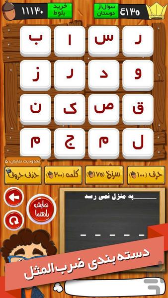 تو این بازی باید با پیدا کردن کلمه های صحیح از بین حروف به هم ریخته امتیاز بگیرید و با دوستاتون به رقابت بپردازین، هرچی امتیاز بالاتری بگیری تو رتبه بندی هم بالاتر میری :) (شایدم اول شدی)