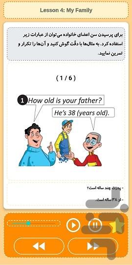 You should review and practice the words of each lesson in this section. Each word must receive five stars to be considered as a learned word. Therefore, to do this, refer to this section in 5 different days. After seeing the picture, you have to remember and say the word, the meaning and the pronunciation of the word.