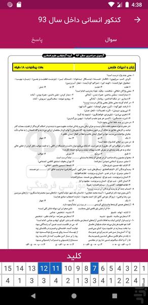 در مجموع 28 مرحله آزمون کنکور سراسری انسانی با پاسخنامه تشریحی و کلیدی قرار داده شده است که هم می توانید سوالات و پاسخنامه را در کنار هم مشاهده کنید و هم امکان شبیه سازی آزمون کنکور و دریافت کارنامه را دارید.