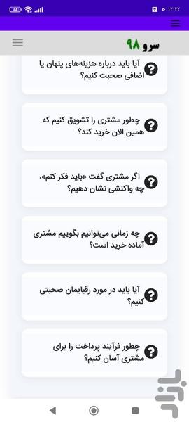 نرمافزار آموزش فروش و مذاکره، یک راهنمای جامع و کاربردی است که به شما کمک میکند تا مفاهیم و اصطلاحات کلیدی در حوزه فروش و مذاکره را بهراحتی درک کنید. این برنامه با ساختار پرسش و پاسخ و فصلبندی منظم، به زبان ساده و سریع، آموزشهای لازم را ارائه میدهد. همچنین، امکان جستجوی عبارات موردنظر را فراهم میکند تا بتوانید بهآسانی به اطلاعات دلخواه دسترسی پیدا کنید. برای مثال، موضوعاتی مانند تفاوت بین محصول و خدمت، روشهای تبدیل «نه» به «بله»، یا عباراتی که نباید در فروش استفاده شوند، در این برنامه پوشش داده شدهاند. این نرمافزار روی گوشیهای اندروید، آیفون، کامپیوتر، لپتاپهای ویندوزی و سایر پلتفرمها قابل نصب است.