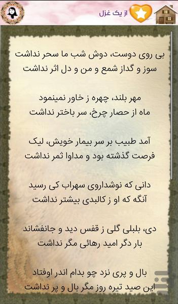 - امکان ستاره دار کردن اشعار مورد علاقه با دسترسی آسانتر در لیستی جداگانه ( فهرست شخصی )