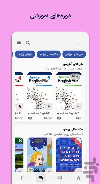 ☆ بخش «انگلیسی روزمره» شامل دوره های آموزشی متداول در آموزشگاههای زبان (ایوالو، فایل انگلیسی آمریکایی، تاپ ناچ، اینترچنج، تاچ استون و ...)
