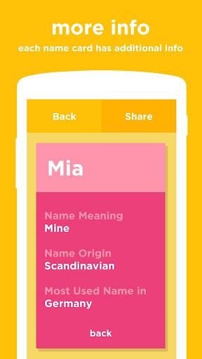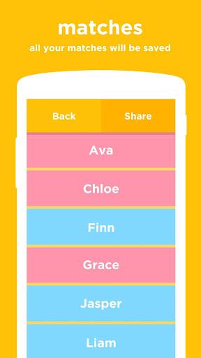 Connect with your partner and swipe through baby name cards together. If you both like the same name, it's a match and is added to your favorites list, so you'll never forget it. One name will last a lifetime.