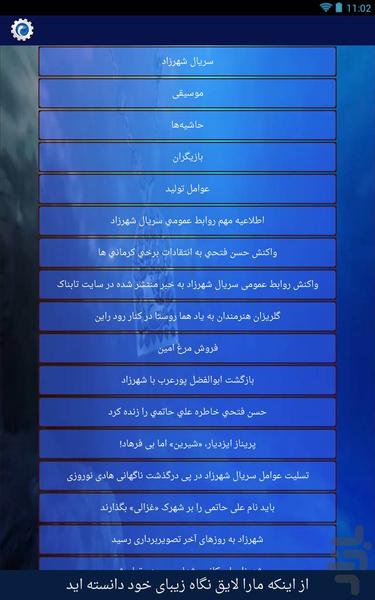 Keywords: Software Scheherazade - Scheherazade -Byvgrafy series starring Sh - Sh - song Ali friendship - Mostafa Zamani - the Shahab Hosseini - Big Sir - A. Nasirian - GH - F - behind the scenes Shahrzad - About serial Sh - Interview - M chavoshi - to Draw relic - the song - love - seryal