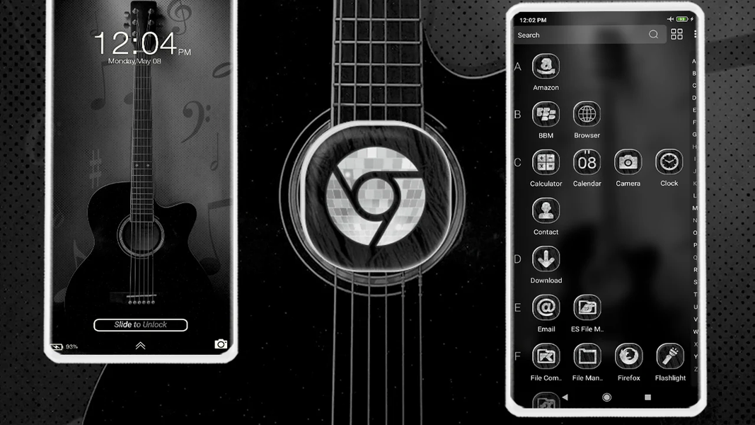 The Black Guitar Launcher Themes is a cute theme for Android with cool Guitar wallpaper and incredibly imaginative custom app icons that will surely make your phone stand out. By downloading it today, personalise your phone!